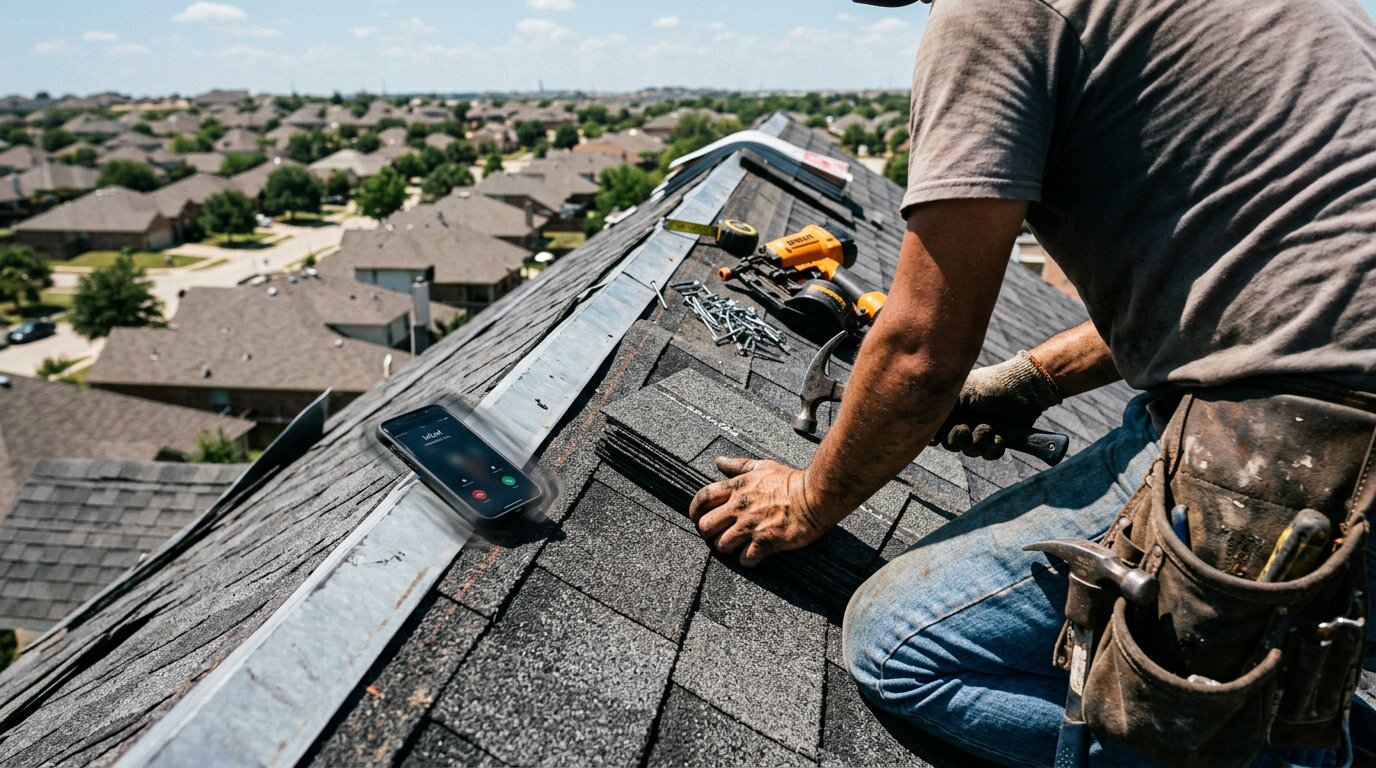 Your phone rings. You're on a ladder installing shingles, hands full of roofing nails. By the time you climb down, the caller has already moved on to the next contractor on their list.